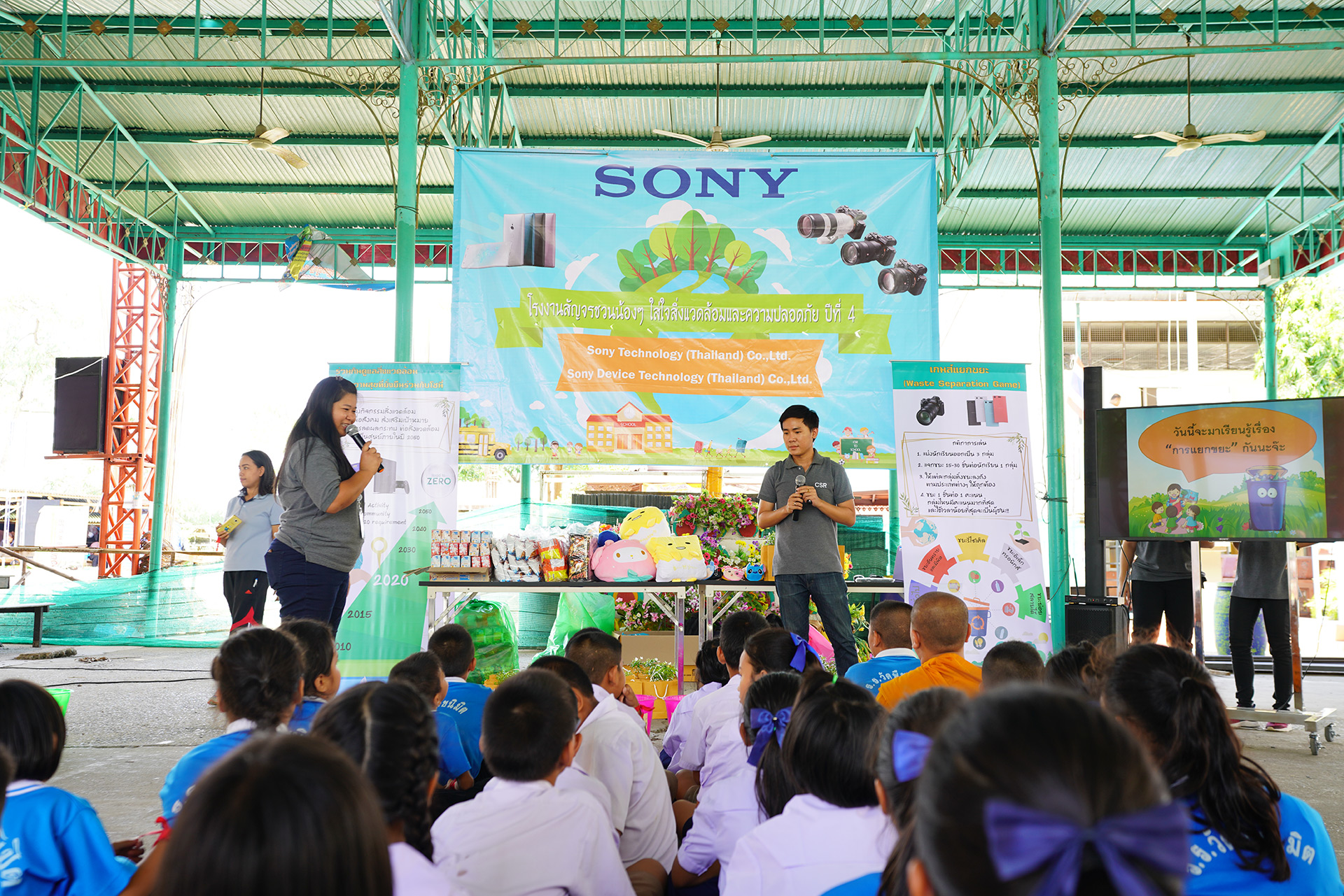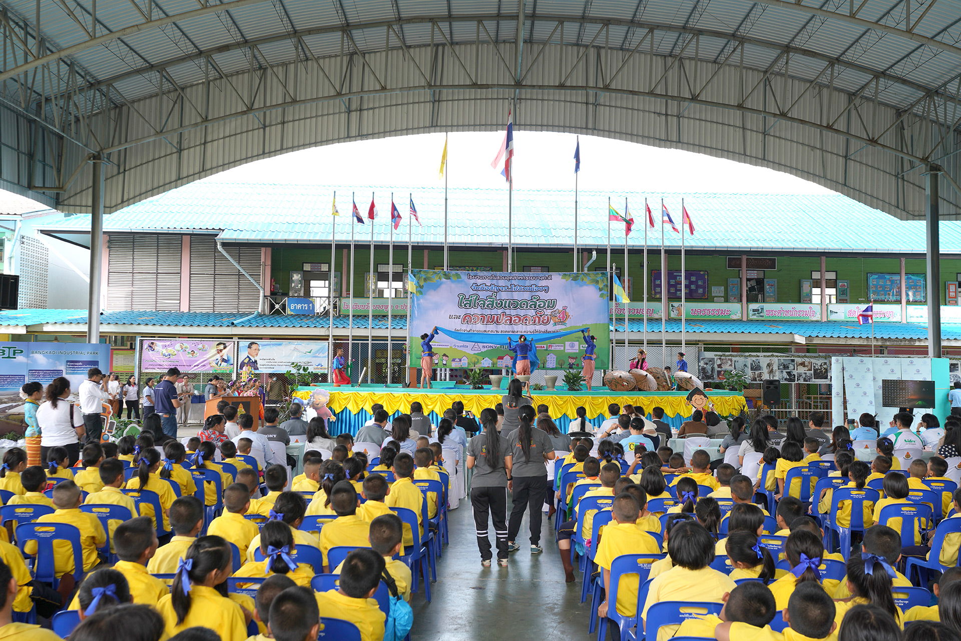 Sony Device Technology (Thailand) Co.,Ltd. together with Bangkadi Industrial Park (BIP) and other companies in BIP organized the environmental activity at the schools nearby factory to encourage students to have an awareness of the environment and safety.