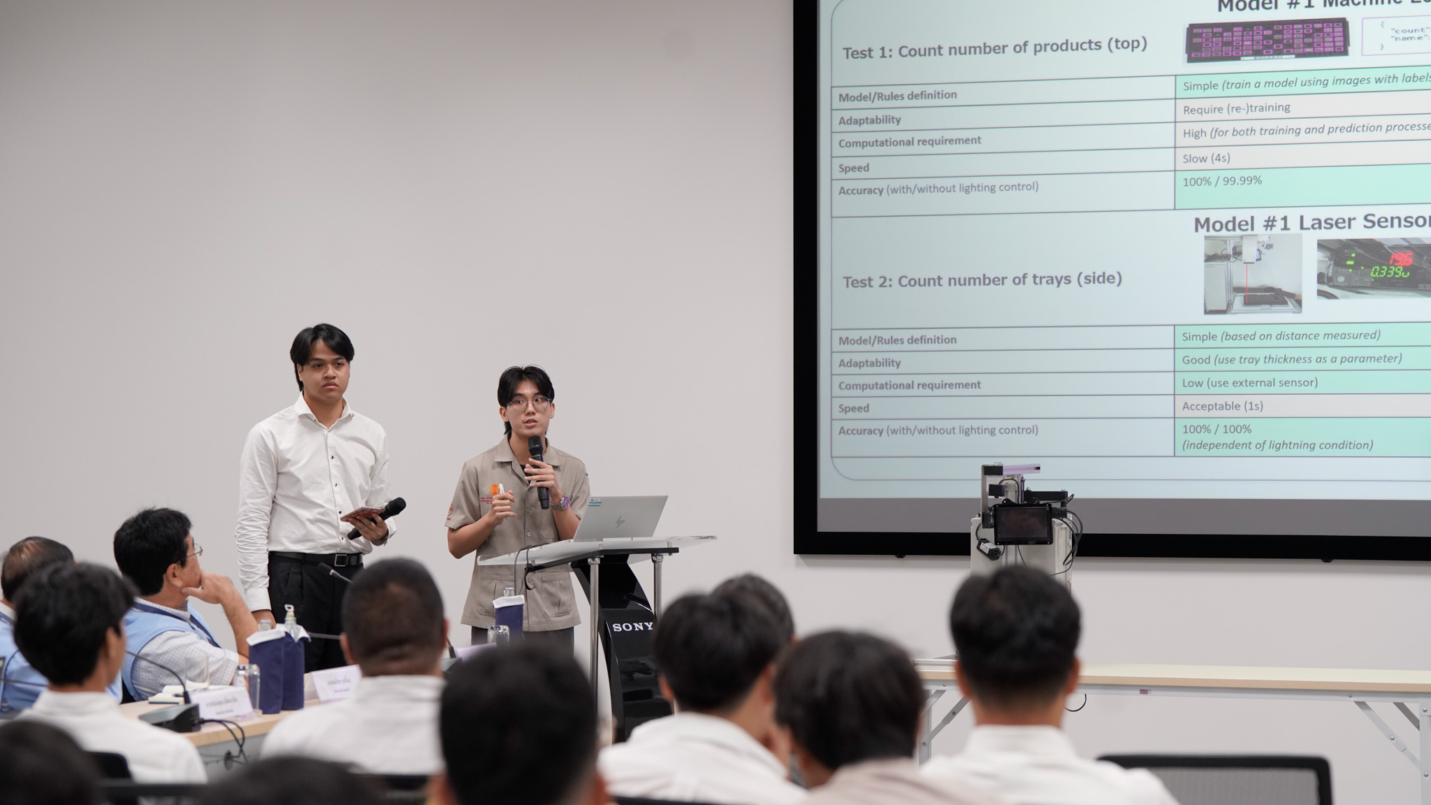 การประชุมสรุปผลโครงการดังกล่าว จัดขึ้น ณ ห้องประชุม C401 อาคาร 4 โดยมร.ทาเคชิ มะสึดะ กรรมการผู้จัดการ บริษัท โซนี่ ดีไวซ์ เทคโนโลยี (ประเทศไทย) จำกัด กล่าวต้อนรับคณาจารย์ทุกท่านและกล่าวเปิดการประชุมอย่างเป็นทางการ